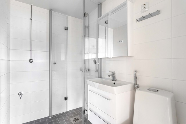 - Peilikaappi, suihku, pesukoneliitäntä, lattialämmitys, ja wc-istuin
