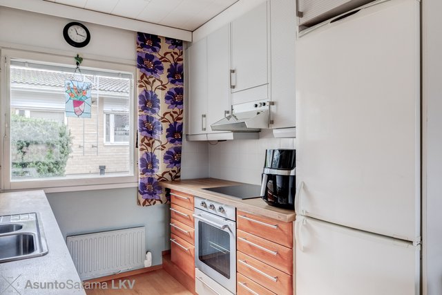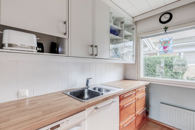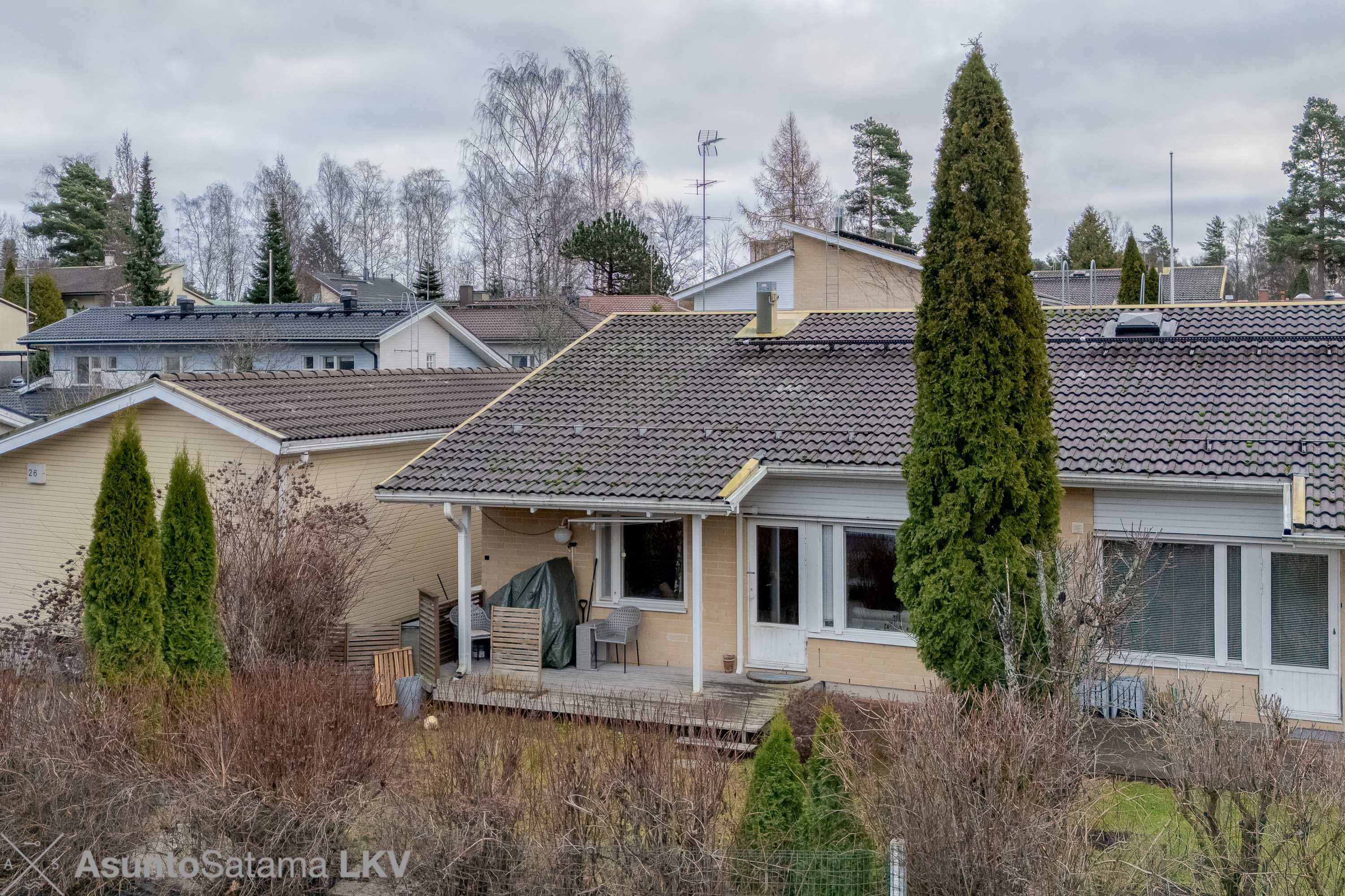 Kodin sydän on tilava olohuone, josta on käynti katetulle terassille ja suojaisalle pihalle. Keittiö on hyvin varusteltu ja sieltä löytyy muun muassa induktioliesi ja uudehko astianpesukone. Makuuhuoneessa on tilava peiliovikaappi ja eteisessä käytännöllinen vaatehuone, jotka tarjoavat runsaasti säilytystilaa.