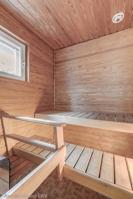 Asunnon sauna, kylpyhuoneen lattialämmitys ja erillinen vessa tuovat lisämukavuutta arkeen.