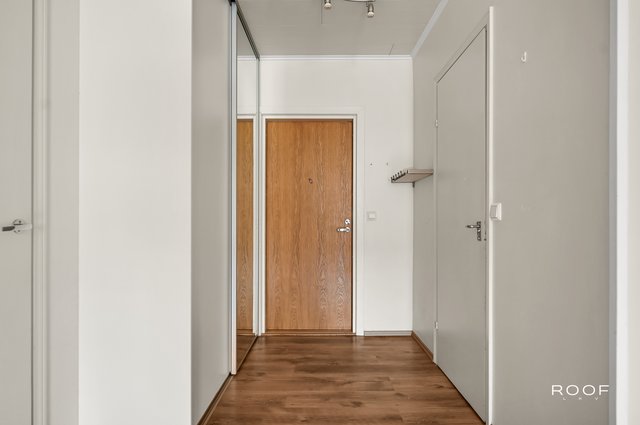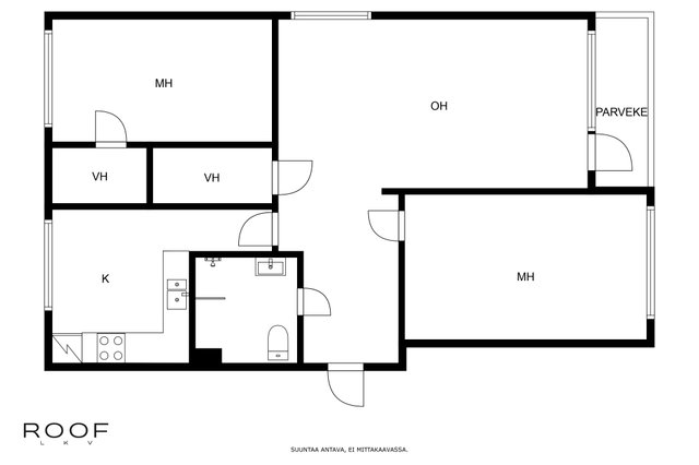 Parveke kaakkoon. Läpi talon ulottuva asunto isoilla ikkunoilla. Kaksi vaatehuonetta.