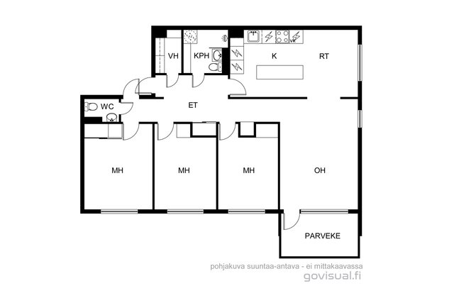 4 h, keittiö, rt, kph/wc, erillinen wc, vaatehuone ja lasitettu parveke
