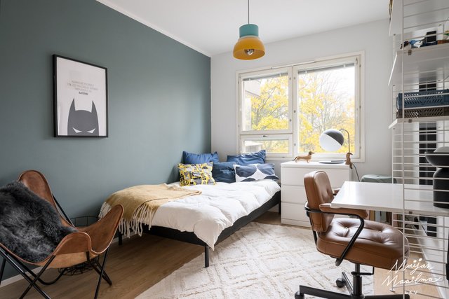 - Makuuhuone 1: Parkettilattia, maalatut seinät. Liukuovikaapisto. Makuuhuone 2: Parkettilattia, maalatut seinät. Kaapisto. Makuuhuone 3: Parkettilattia, maalatut seinät. Kaapisto.