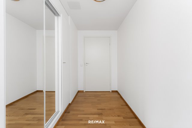 - Eteisessä maalatut seinät, parkettilattia, liukuovikaappi ja erillinen siivouskaappi.