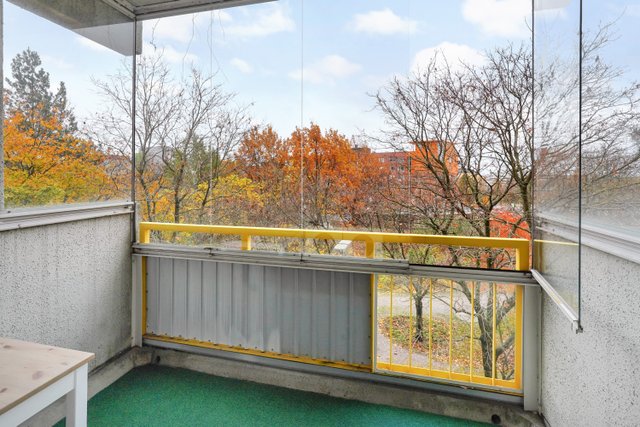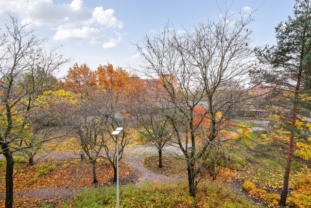 - Yhtiön sisäpiha, puistonäkymä olohuoneesta, keittiöstä ja parvekkeelta. Ikkunoita kolmeen ilmansuuntaan, pohjoinen, itä, etelä.