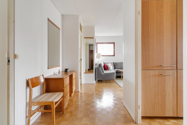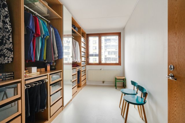 Asunnossa on runsaasti säilytystilaa, kylpyhuoneen yhteydessä on vaatehuoltoon ja kodinhoitoon soveltuva ikkunallinen tila ja erillinen wc eteisen yhteydessä.