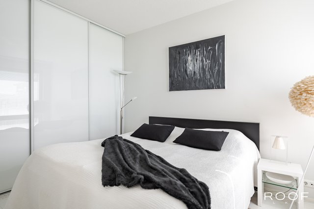 Harmoninen makuuhuone tarjoaa erinomaiset puitteet rauhoittumiseen ja lepoon. Makuuhuoneesta löytyy hyvin säilytystilaa kaapistoista ja näkymät ovat ikkunasta järvelle ja vehreälle, suojaisalle sisäpihalle.