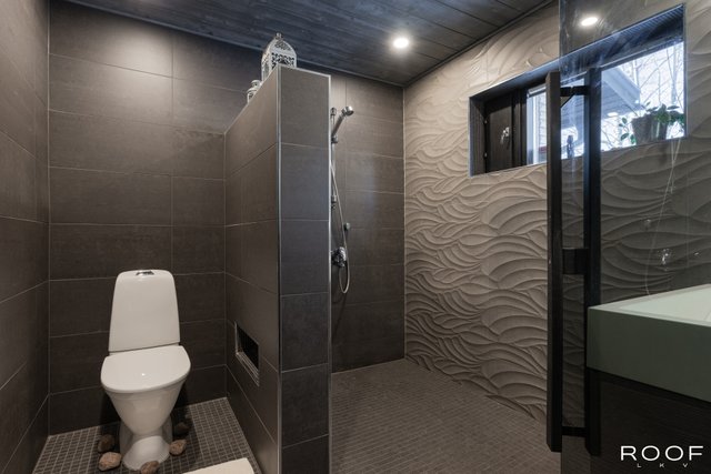 Kylpyhuone remontoitu kokonaisuudessaan.