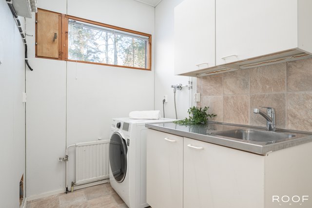 - Pesukoneliitäntä, pesuallas, pöytätaso, ja kaapisto