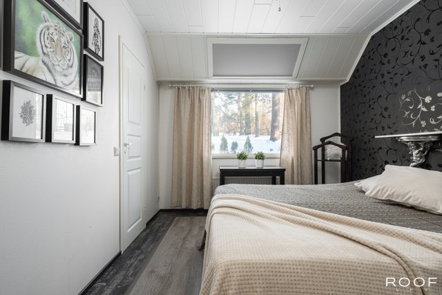 - Yhden makuuhuoneen yhteydessä vaatehuone ja kahdessa muussa makuuhuoneessa kaapistot.
