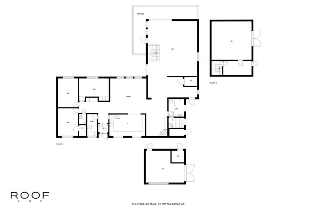 - Rakennuslupapiirroksen mukaan alkuperäisosan huoneistoala on 139 m² ja kerrosala 189 m². Rakennusluvan mukaan alkuperäisosan huoneistoala on 107 m² ja kerrosala on 189 m². Rakennuslupapiirroksen mukainen laajennusosan huoneistoala on 80,5 m², rakennusala 94 m² ja kerrosala 127,5 m². Vihdin kunnan epävirallisen rakennus- ja huoneistorekisteriotteen 9.1.2024 mukaan asuinrakennuksen huoneistoala on 260 m² ja kerrosala on 274 m². Mainitut pinta-alat saattavat poiketa olennaisesti nykyisten standardien mukaan laskettavasta asuinpinta-alasta. Todellinen asuinpinta-ala voi olla mainittua pienempi tai suurempi. Pinta-aloja ei ole tarkistusmitattu, eikä kohteen hinta määräydy pinta-alan perusteella.