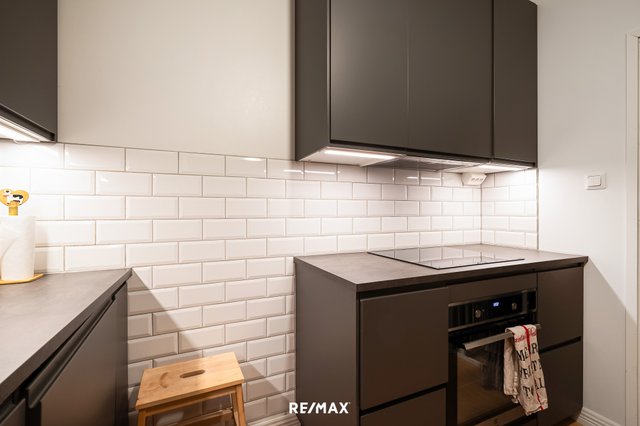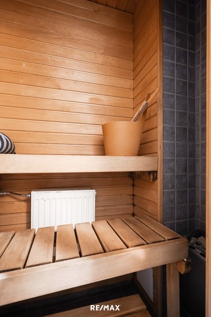 Keittiö ja kylpyhuone on toteutettu toimivasti ja ajattomasti, ja oma sauna tuo arkeen harvinaista luksusta. Materiaalivalinnat ja mittasuhteet kunnioittavat talon alkuperäistä henkeä – tässä kodissa jugend ei ole päälle liimattua, vaan luonteva osa kokonaisuutta.