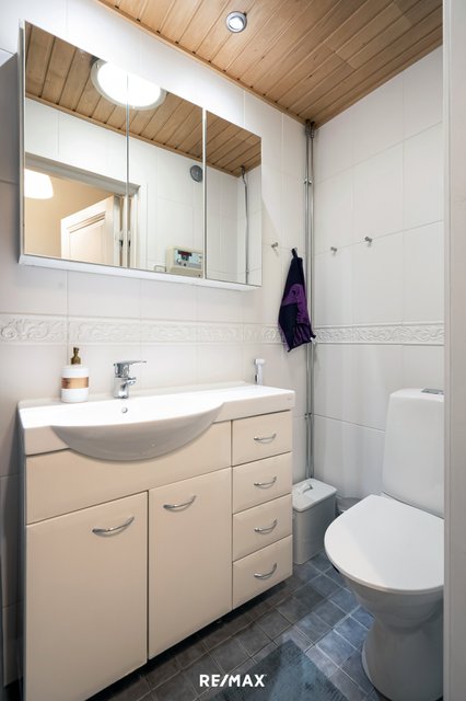 - WC-istuin, suihku, lattialämmitys, peilikaappi, allaskaappi, ja bidee-suihku
