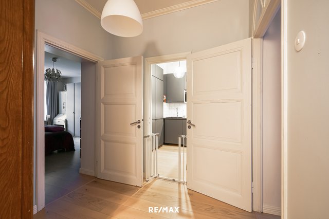 Korkeat huoneet, suuret ikkunat ja harkittu pohjaratkaisu luovat avaran mutta rauhallisen kokonaisuuden. Vaikka asunto sijaitsee virallisesti ensimmäisessä kerroksessa, ei siitä ole näköyhteyttä ohikulkijoihin, mikä lisää asumisen yksityisyyttä. Asunto sijaitsee sisäpihan puoleisessa siivessä, joten liikenteen äänet eivät kantaudu sisälle. Luonnonvalo siivilöityy kauniisti huoneisiin ja korostaa aikakaudelle ominaista arkkitehtuuria sekä hillittyä eleganssia.