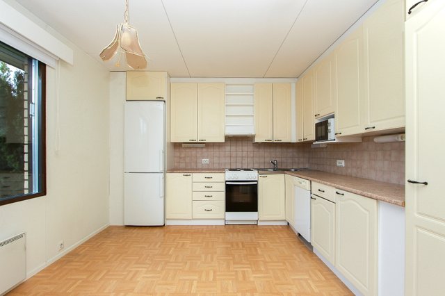 - Kaapistot, sähköhella/uuni, jääkaappipakastin yhdistelmä, astianpesukone ja liesituuletin.