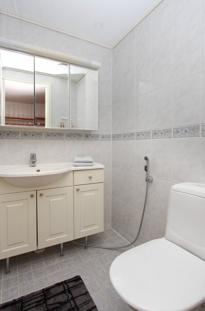 - Suihku, pesuallas, allaskaappi, peilikaappi ja pesukoneliitäntä. Kylpyhuone remontoitu v. 2009.