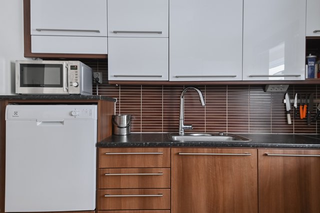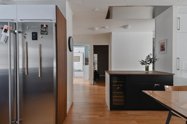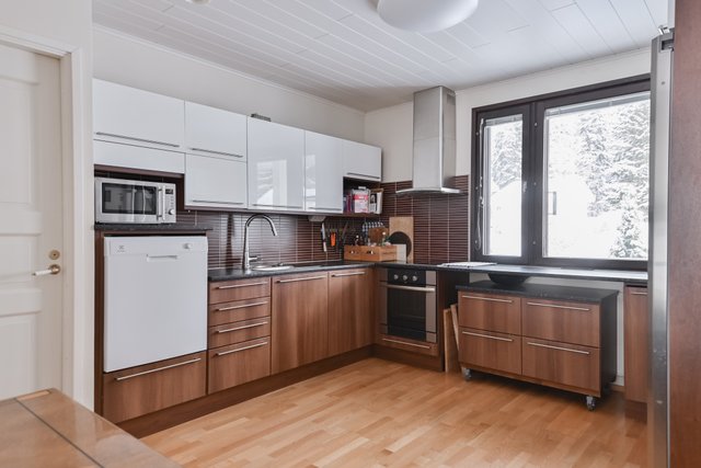 - Astianpesukone, liesi, uuni, liesituuletin, mikroaaltouuni, viinikaappi, keittiösaareke, jää-viileäkaappi, ja erillinen pakastin