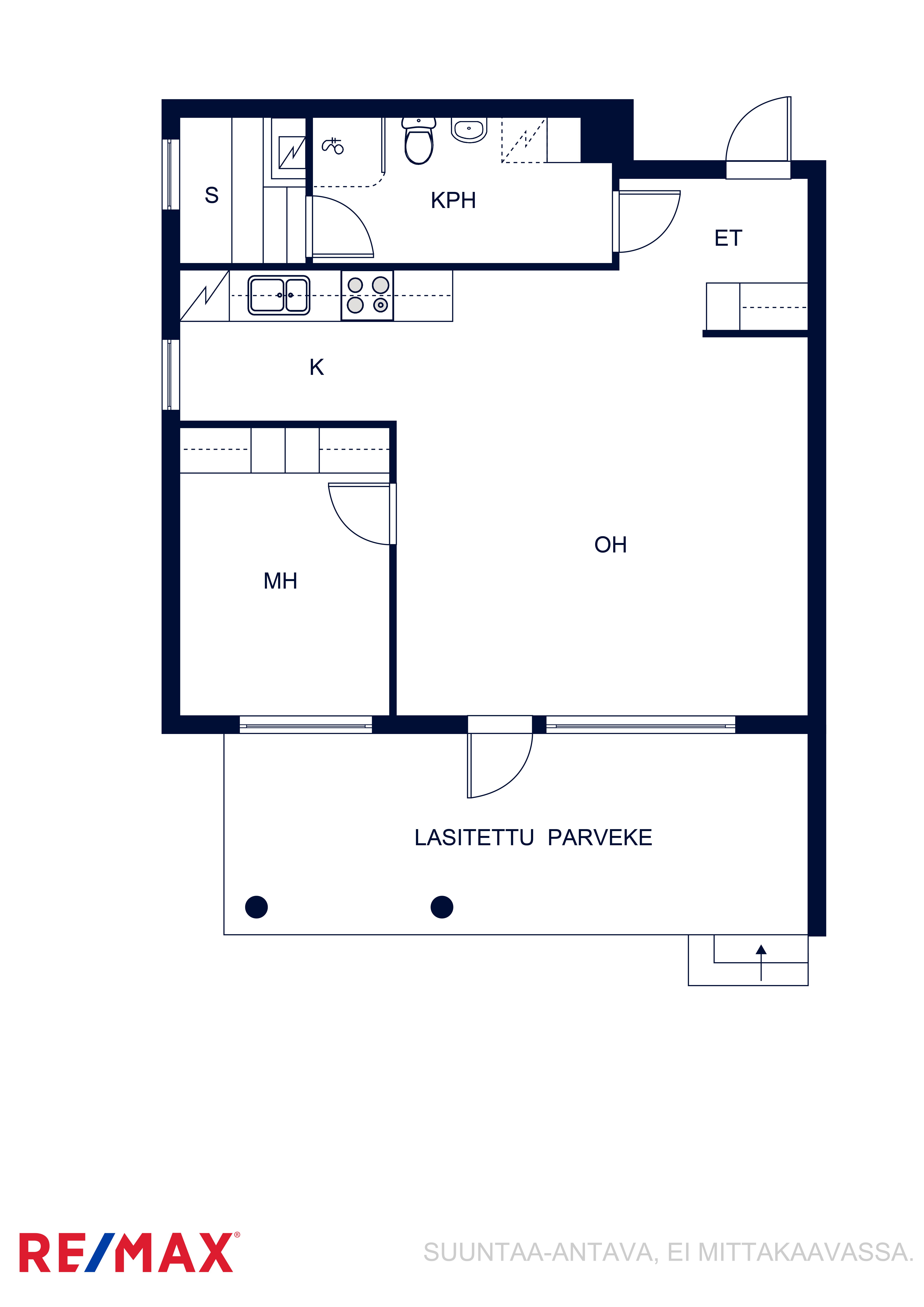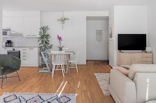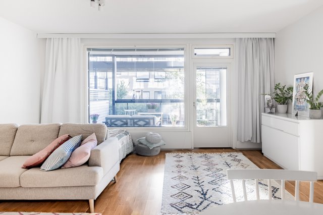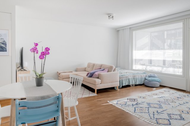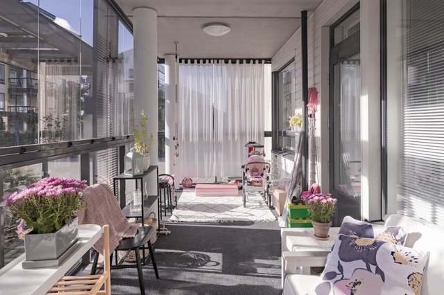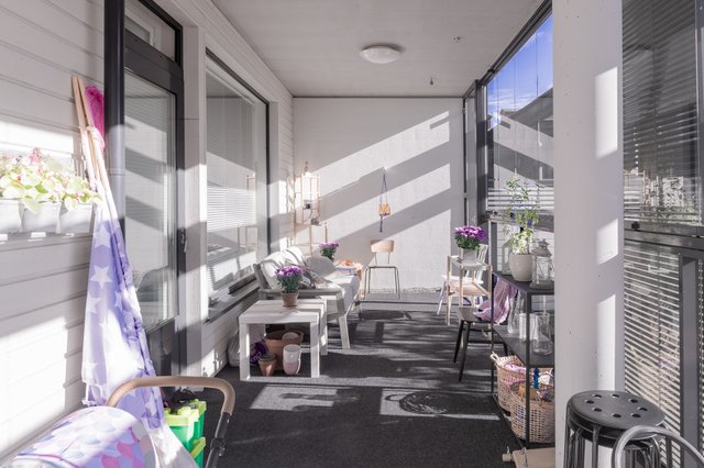 Asunnon sydän on tilava olohuone, josta on käynti lasitetulle terassiparvekkeelle ja rajatulle asuntopihalle. Tämä tila tuo mukavasti lisätilaa ja mahdollisuuden nauttia ulkoilmasta omassa rauhassa. Keittiö on varusteltu nykyaikaisilla kodinkoneilla, ja siellä on runsaasti kaappitilaa. Makuuhuoneessa on parkettilattia, ja kylpyhuoneessa on mukavuuksia kuten lattialämmitys ja pesukoneliitäntä. Oman saunan löylyissä rentoudut arjen kiireiden keskellä.