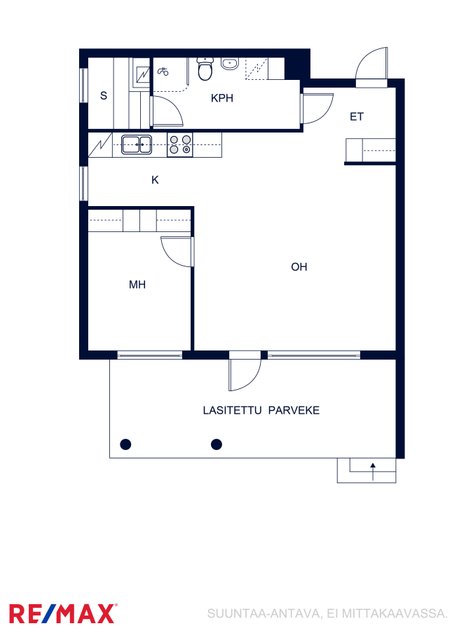 - Olohuoneesta käynti terassiparvekkeelle sekä piha-alueelle.