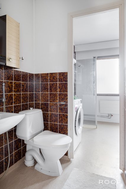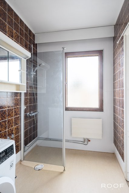 - Suihku, suihkuseinä, pesukoneliitäntä, ja lattialämmitys