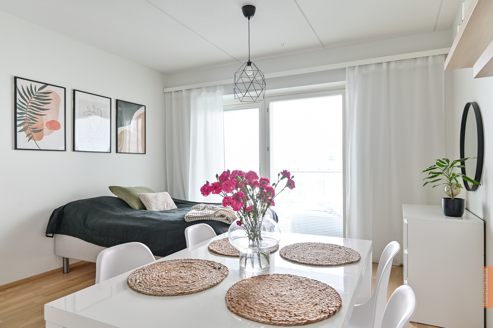 Tämä 12.kerroksen kompakti yksiö on valoisa ja pohjaratkaisultaan toimiva.