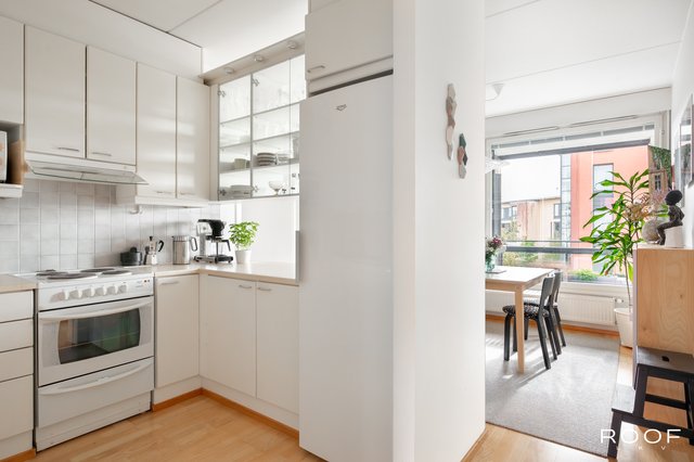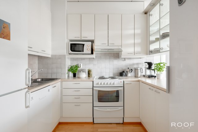 - VARUSTUS: Liesituuletin Uuni Hana Kaapisto Allas Astianpesukone Jääkaappi Pakastin Sähköliesi SEINÄT: Laatta ja maali LATTIA: Parketti