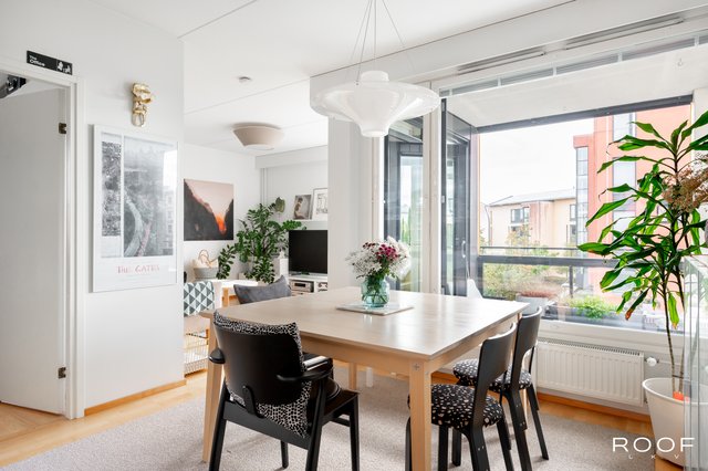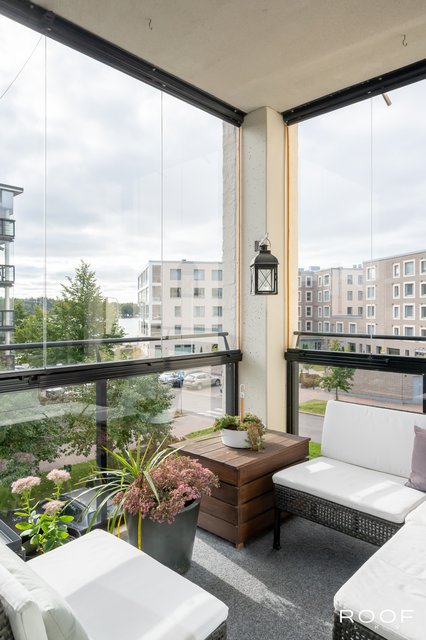Valoisa kulmahuoneista loistavalla pohjalla. Päätyasunnosta on näkymät kaikkiin ilmasuuntiin. Omalla parvekkeella voit vilvoitella löylyjen jälkeen ja ihailla upeaa merinäköalaa. Asunnossa on paljon säilytystilaa ja erillisen keittiön voit remontoida mieleiseksi.
