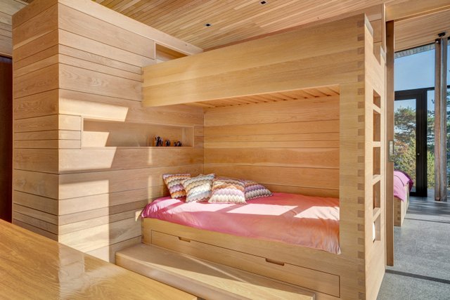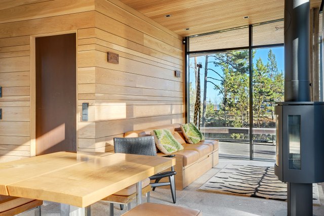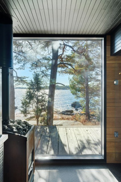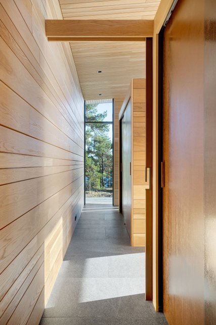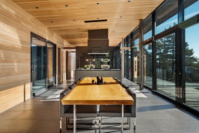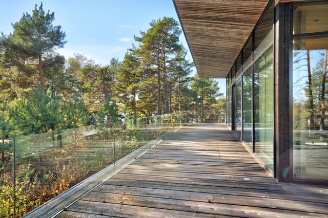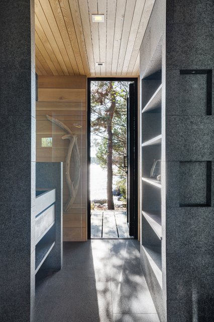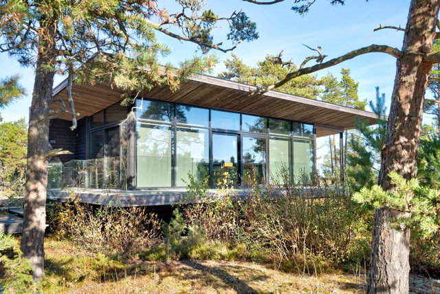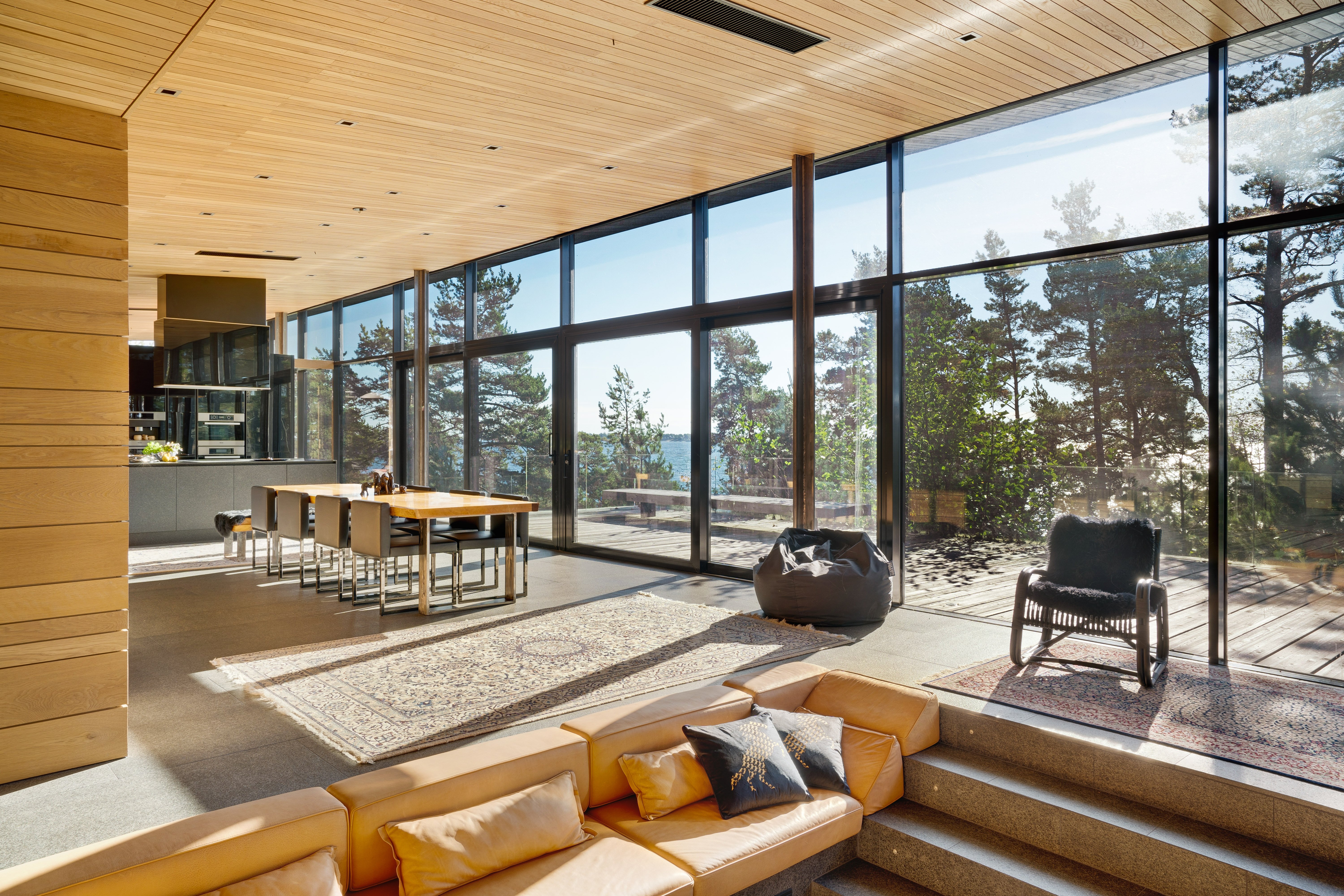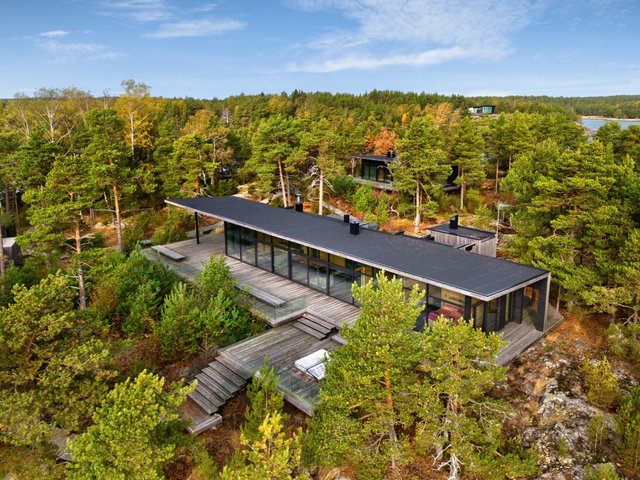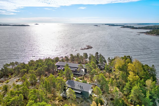 Arkkitehti Joanna Mauryn suunnittelemat rakennukset - päärakennus, vierasmaja ja sauna - omaavat upeine yksityiskohtineen juuri saaren luonteeseen sopivan tunnelman. Sisustuksessa käytetyt materiaalit - graniitti, tammi, lasi sekä upea, ruosteinen corten-teräs toistuvat eri tiloissa luoden harmonisen ja harkitun kokonaisuuden. Isot terassit rakennusten ympärillä tarjoavat sopivan ajanviettopaikan päivän jokaisena hetkenä. Kulku rakennuksesta toiseen on tehty helpoksi kestävine siperianlehtikuusesta rakennettuine käytävineen. Rannan varastorakennus harrastusvälineille ja tarvikkeille sekä mm. helikopterin kestävä laituri ovat oivana lisänä tälle täydellisyyttä hipovalle kiinteistökokonaisuudelle.