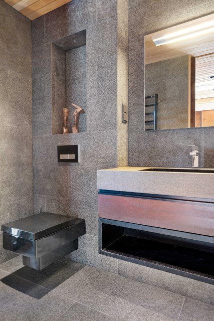 - Kylpyhuoneen yhteydessä suljettava wc-tila. Lisäksi erillinen wc: kiinteät valaisimet, pyyhekuivain, peili ja pesuallastaso. Lattia- ja seinäpinnoitteet: lattia graniittilaatta, seinät laatta.