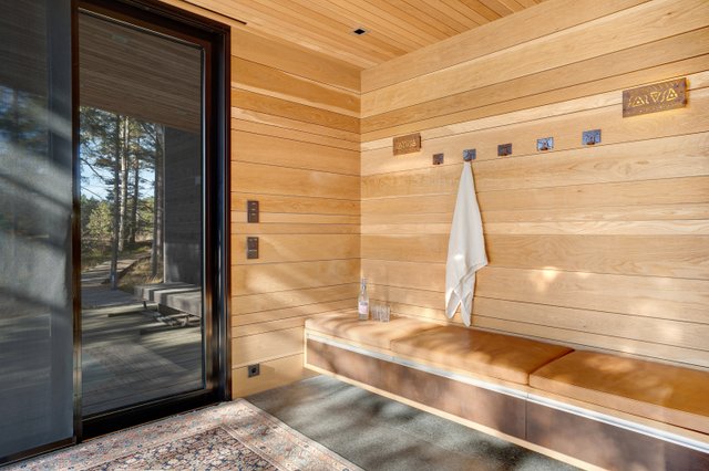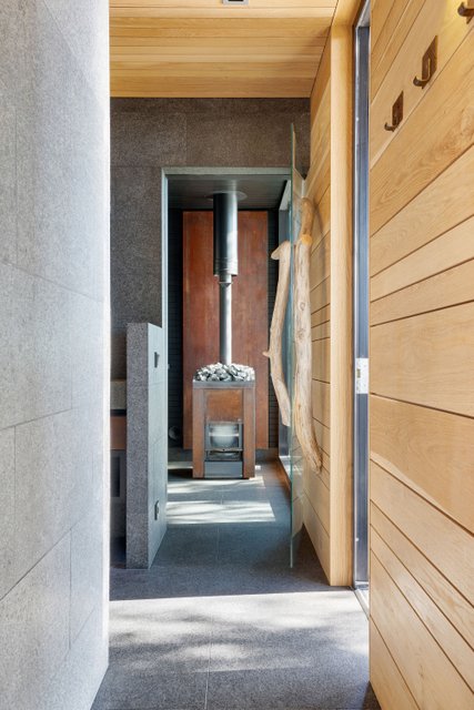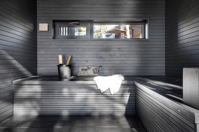- Rantasaunassa puukiuas, 2 suihkua, wc, pesuallas tasoineen. Lattia- ja /seinäpinnoitteet: lattia graniittilaatta, seinät puupaneeli
