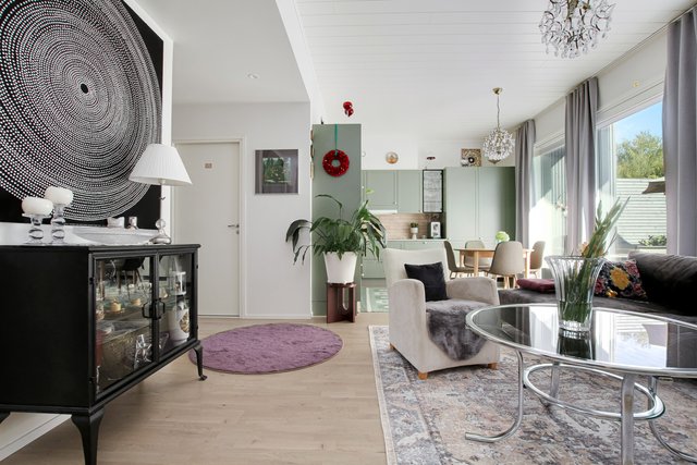 Asunto on viimeistelty näyttävästi ja isot ikkunat olohuoneessa tarjoavat mukavasti luonnonvaloa. Kylpyhuone ja WC on varustettu Villeroy-Bochin tyylikkäillä kaakeleilla ja kalusteilla, moderni ja hyvin tyylikäs keittiö hakee vertaistaan ja ilmalämpöpumppu pitää huolen asumismukavuuksista myös kesäkuumalla.