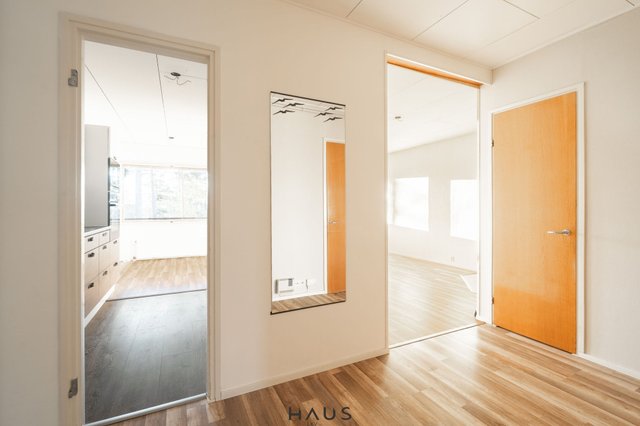 Asunnossa on tilava makuuhuone, käytännöllinen ja hiljattain uusittu keittiö sekä avara ruokailutilan ja olohuoneen kokonaisuus, joka kutsuu viihtymään. Olohuoneessa on komea takka, joka lämmittää ja luo tunnelmaa viileisiin talvipäiviin ja ilmalämpöpumppu viilentää kuumilla kesäpäivillä. Modernisoitu kylpyhuone sekä asunnolle kuuluva parveke tuovat asumiseen mukavuutta ja helppoutta. Säilytystilaa on myös mukavasti. Lisäksi huoneistolla on huoneiston 1 kanssa yhteiskäytössä oleva sauna talon pohjakerroksessa.