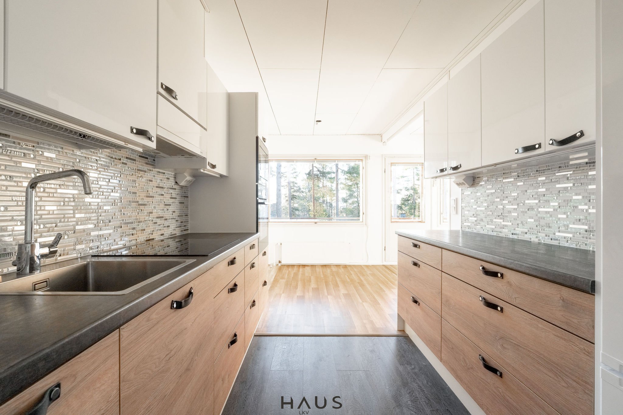 Tämä valoisa ja hyvin pidetty koti sijaitsee rauhallisella, metsäisellä tontilla, kahdeksan asunnon yhtiössä – täydellinen valinta luonnonläheistä asumista arvostavalle.