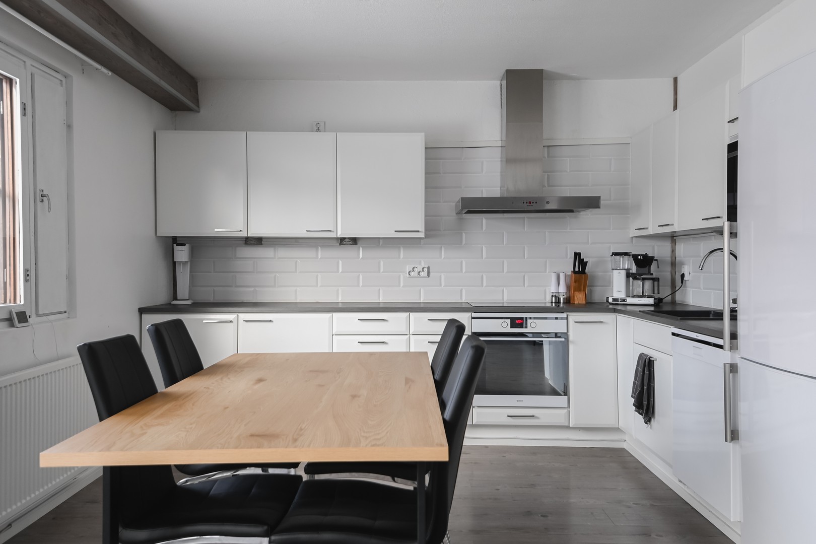 - Jääkaappipakastin, liesi, liesituuletin, ja astianpesukone