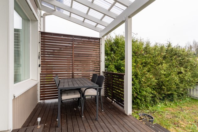 Asumismukavuutta lisää oma autokatos, päätyasunnon sijainti ja tietenkin se, että koti sijaitsee omalla aidatulla pihalla ja tontilla, mikä takaa rauhan, yksityisyyden ja pitkäaikaisen arvon säilymisen.
