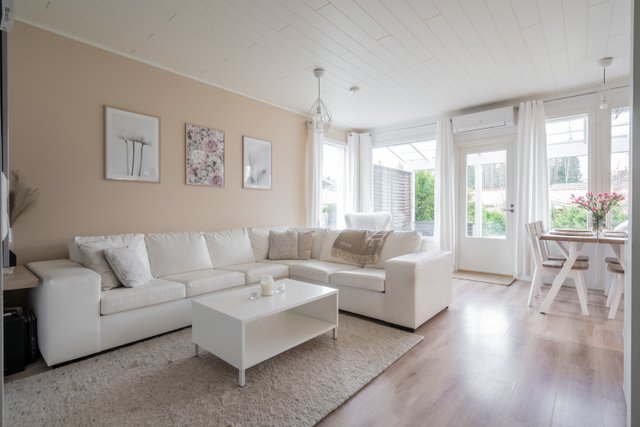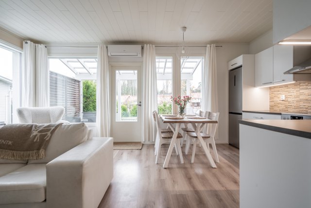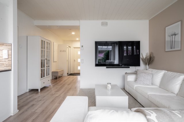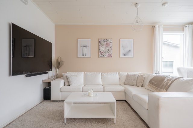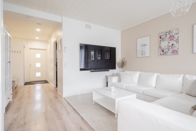 Tämä kodikas rivitaloasunto vuodelta 2014 yhdistää modernin asumismukavuuden. Avarat huoneet ja laadukkaat materiaalit luovat elegantin ja kutsuvan tunnelman.