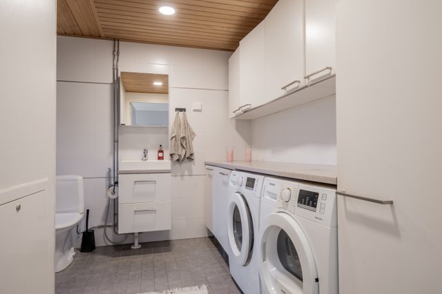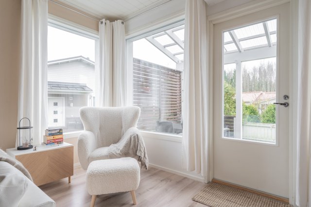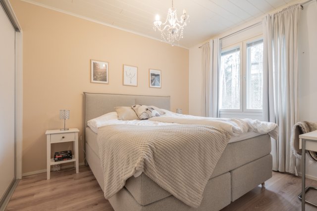 Oma sauna ja tilava kylpyhuone tarjoavat arjen rentoutumishetket, ja terassilla voit nauttia kauniista kesäilloista täysin omassa rauhassa. Asumisen energiatehokkuudesta huolehtii maalämpö, ja ilmanlämpöpumppu pitää sisäilman miellyttävänä ympäri vuoden, samalla pitäen kustannukset kohtuullisina.