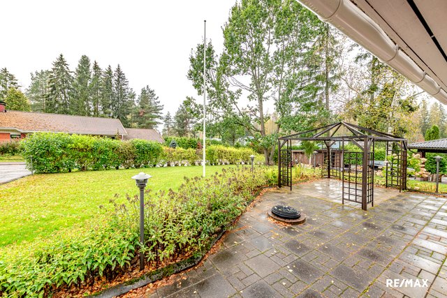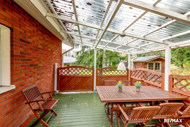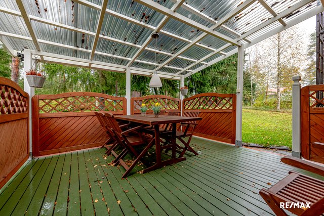 Talon pihapiiri on reilun kokoinen ja tarjoaa mahdollisuuden nauttia ulkoilmasta omalla katetulla terassilla.