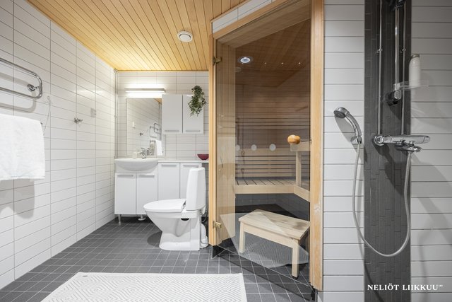 - Tilava kylpyhuone ja oma sauna