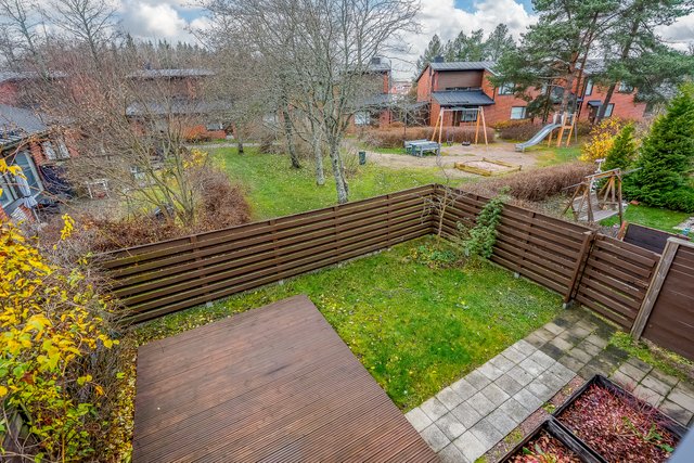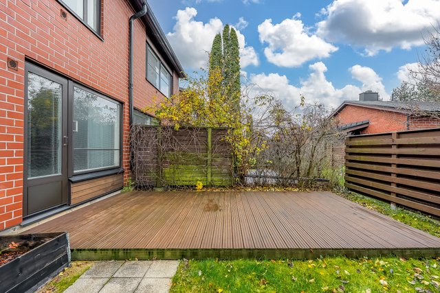 Tämä viehättävä rivitalokoti Suutarilassa tarjoaa loistavan mahdollisuuden mukavaan ja helppoon asumiseen. Asunnon valoisa ja avara olohuone avautuu suojaisalle eteläpihalle, jossa voit rentoutua omassa rauhassa. Aidattu piha tuo yksityisyyttä ja tekee pihasta turvallisen myös lapsille ja lemmikeille. Tilavalta terassilta avautuu helppohoitoinen nurmialue. Pihan istutukset, omenapuu, pensasmustikka ja mansikka tuovat sekä väriä ja oman sadon iloa.