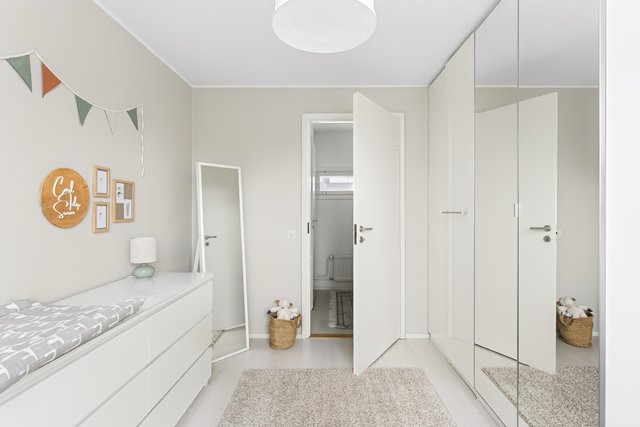 - Makuuhuoneet sijaitsevat yläkerrassa, molemmissa makuuhuoneissa pelikaapistot.