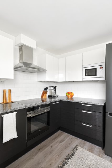 - Jääkaappipakastin, liesi, uuni, ja astianpesukone