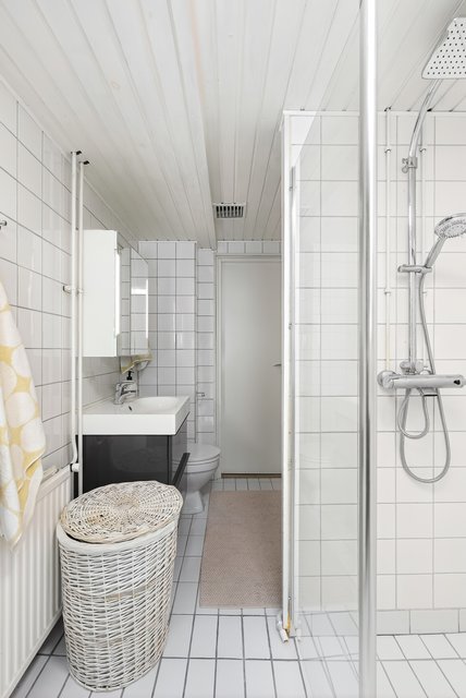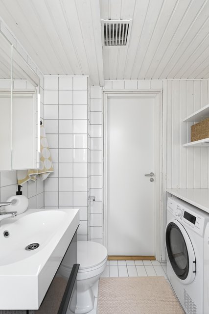 - WC-istuin, allaskaappi, suihku, suihkuseinä, pesukoneliitäntä, peilikaappi, ja bidee-suihku