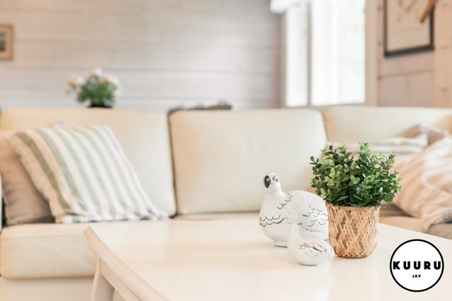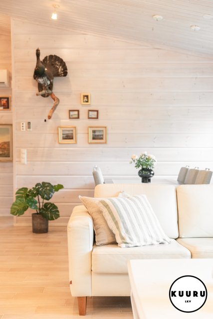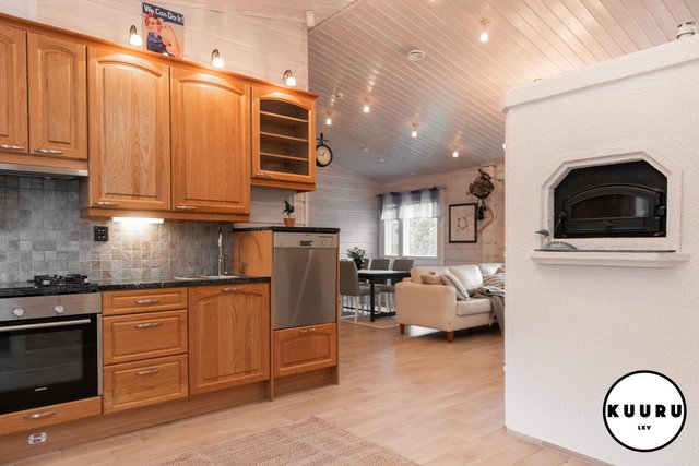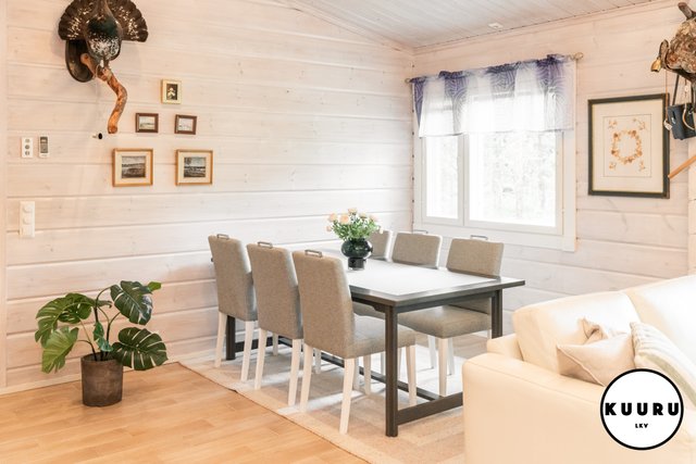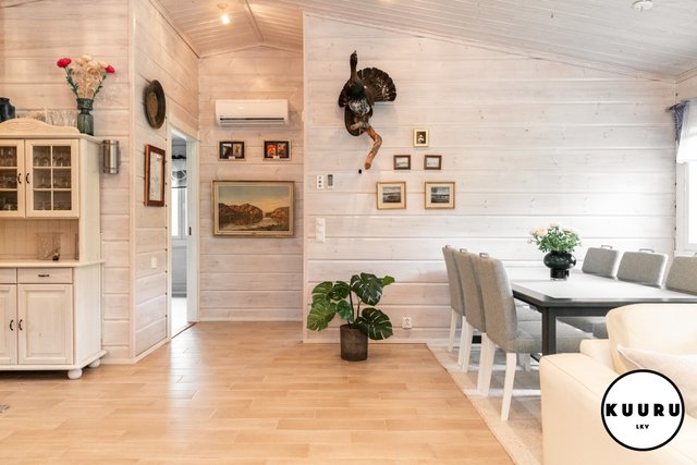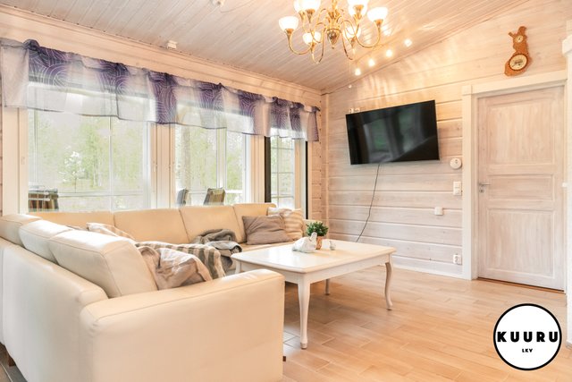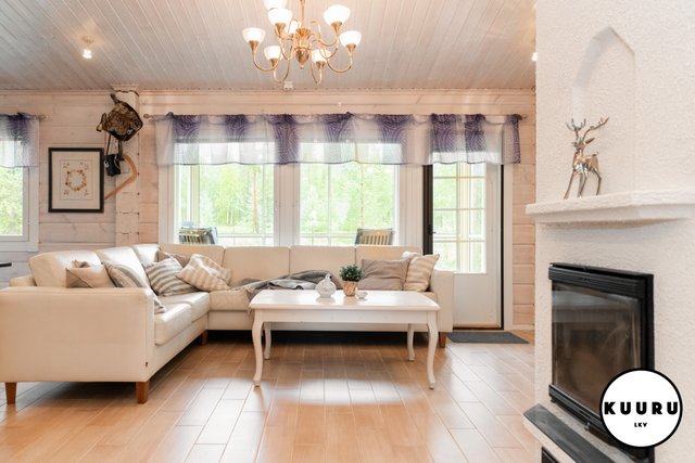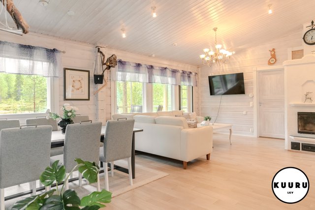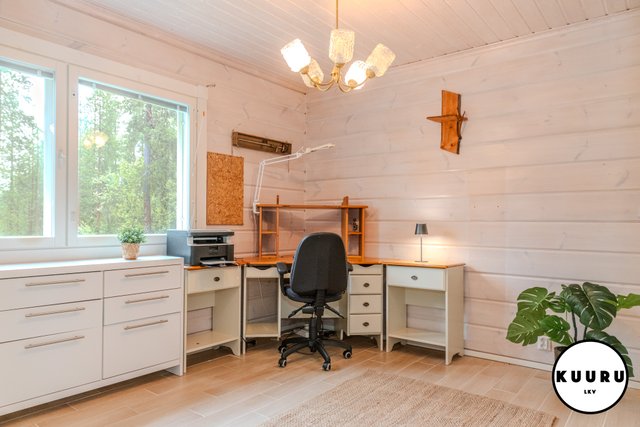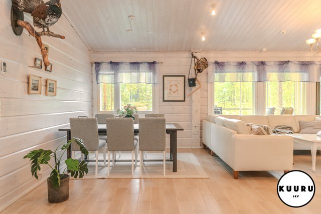 Huvilan tilat ovat avarat ja valoisat. Olohuoneessa on lämpöä ja tunnelmaa luova varaava takka, joka tekee tilasta kodikkaan. Keittiö on tilava ja varustettu laadukkailla kivitasoilla sekä kaikilla tarvittavilla kodinkoneilla, mikä tekee ruoanlaitosta nautinnollista. Kolme makuuhuonetta tarjoavat runsaasti tilaa perheelle tai vieraille, ja yksi huoneista on toiminut toimistona, mikä mahdollistaa etätyöskentelyn rauhallisessa ympäristössä.