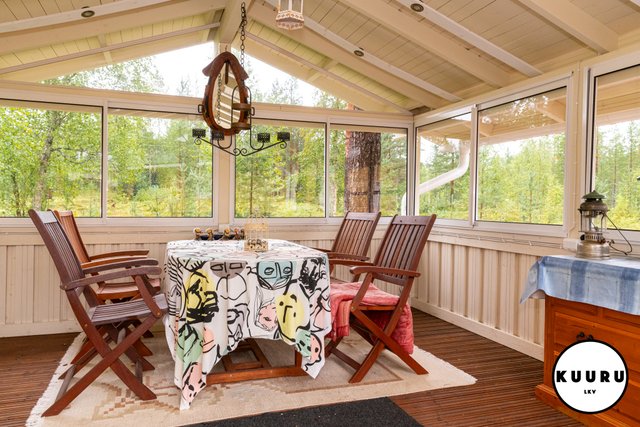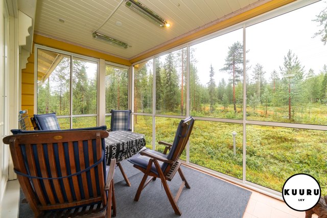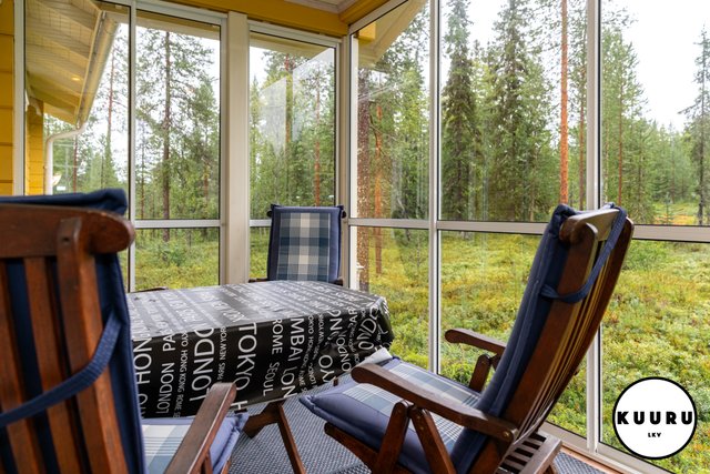 - Kohteessa on lasitettu terassi, joka tarjoaa viihtyisän paikan ruokailuhetkiin ja rentoutumiseen. Kesäpäivinä siellä on mukava nauttia raittiista tunturi-ilmasta säältä suojassa, ja tila toimii mainiosti myös oleskeluun pitkälle syksyyn.