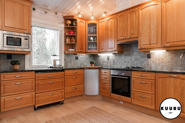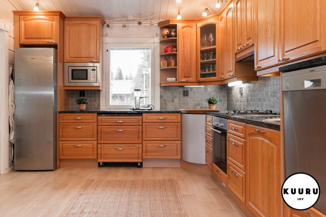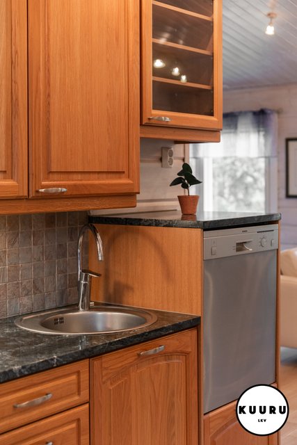 - Keittiö on tavanomaista tilavampi ja tarjoaa erinomaiset puitteet ruoanlaitosta nauttivalle. Tyylikkäät kivitasot tuovat sekä kestävyyttä että näyttävyyttä arkeen. Keittiöstä löytyy runsaasti lasku- ja säilytystilaa sekä kaikki tarvittavat kodinkoneet, jotka tekevät arjesta sujuvaa. Tämä keittiö kutsuu niin arjen kokkailuun kuin isommankin porukan kestitsemiseen.