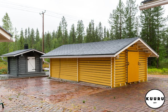 - Autotalli, autokatos, liiteri ja savusauna ja kesäkeittiö.
