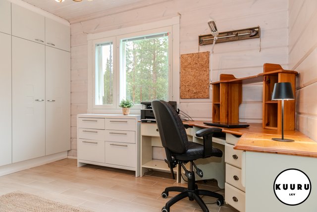 - Kohteesta löytyy kolme makuuhuonetta, joista yksi on ollut käytössä toimistona. Jokaisessa makuuhuoneessa on ikkuna, mikä tuo tiloihin runsaasti luonnonvaloa ja tekee niistä viihtyisiä sekä helposti muunneltavia eri käyttötarpeisiin.