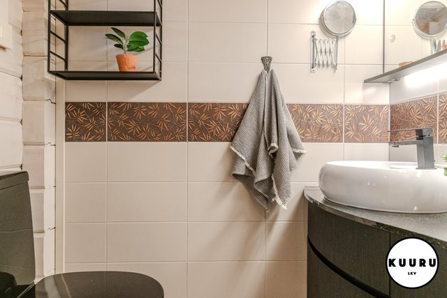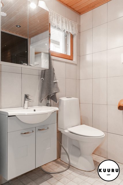 - Tyylikkäästi sisustettu erillinen wc, josta löytyy käytännöllistä säilytystilaa sekä peilikaappi. Huoliteltu ilme tekee tilasta sekä toimivan että viihtyisän arjen käyttöön.