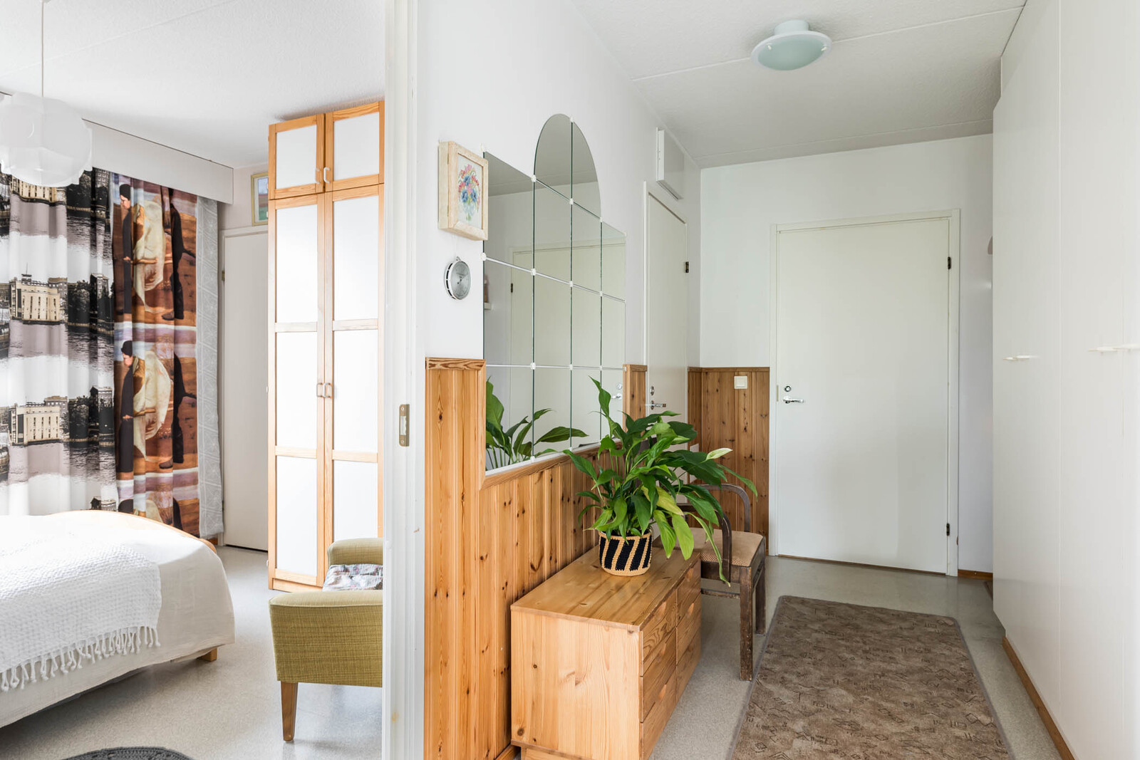 Asunnossa on hyvin suunnitellut ja tilavat huoneet, oma sauna sekä lasitettu parveke, joka tuo lisämukavuutta arkeen ympäri vuoden. Vaaleat pinnat ja runsas luonnonvalo tekevät kodista avaran tuntuisen. Pinnat päivittämällä tästä saa todella kivan kodin!