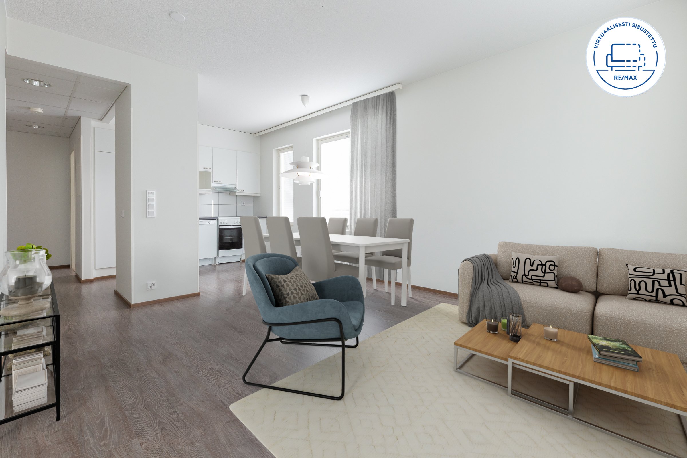 Tähän päätyhuoneistoon on helppo ihastua! Asunto yhdistää käytännöllisyyden, modernin mukavuuden ja kauniit näkymät. Kodin keskiössä on avoin ja valoisa yhtenäinen olohuone-keittiötila. Asunnon kaksi makuuhuonetta on sijoitettu eri puolille huoneistoa tarjoten yksityisyyttä. Toisessa makuuhuoneessa on käytännöllinen vaatehuone liukuovella, toisessa puolestaan tilavat kaapistot. Hulppean kokoinen huoneiston levyinen lasitettu parveke toimi erinomaisena lisäoleskelutila. Tilava kylpyhuone on suunniteltu käytännölliseksi, ja pyykkihuoltokin sujuu siellä vaivatta. Oman saunan lempeät löylyt puolestaan tarjoavat täydellisen paikan rentoutumiseen.